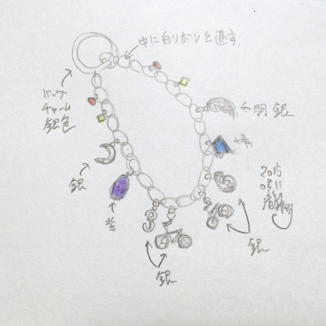 2人のイメージとして、それぞれ羽のチャームと月のチャームを付けました。