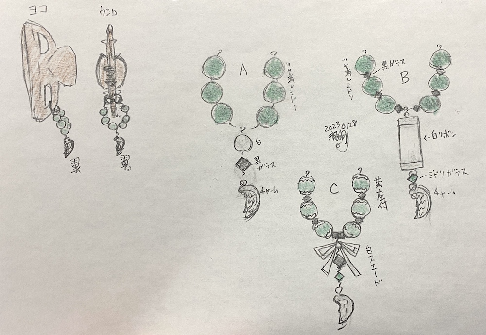 3.ヘアクリップを元に、デザインを3パターン提示